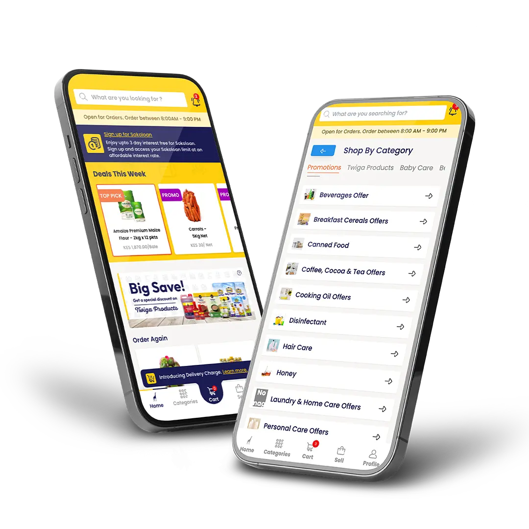 Choose between shopping at the stores or the user-friendly ZuaSoko app.